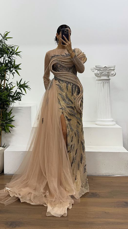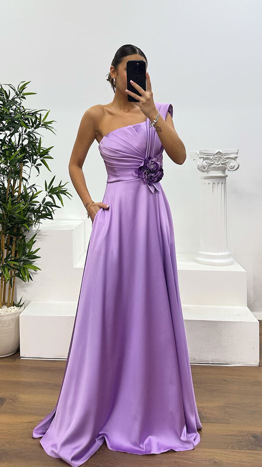 Picturesque Beauty Tulle Floral Pleated One Shoulder Sleeve Slit Maxi Dress