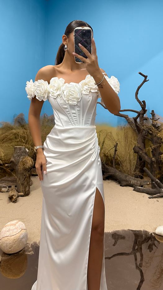 Rose Detail Design Evening Dress on the Chest