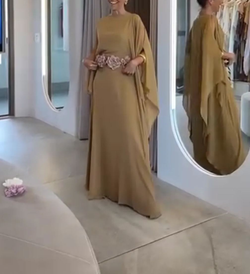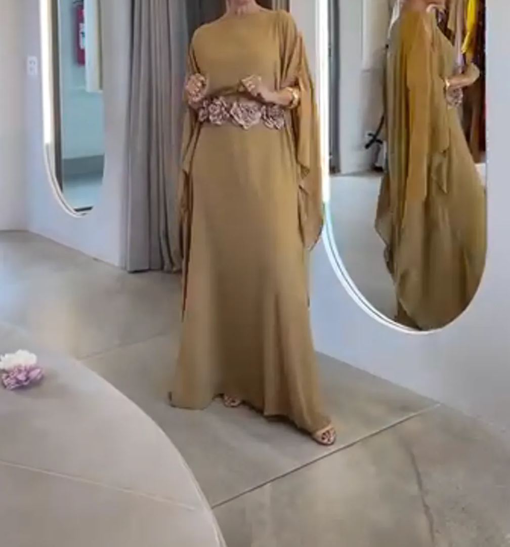 Camel Kaftan Gown with Floral Waist Detail