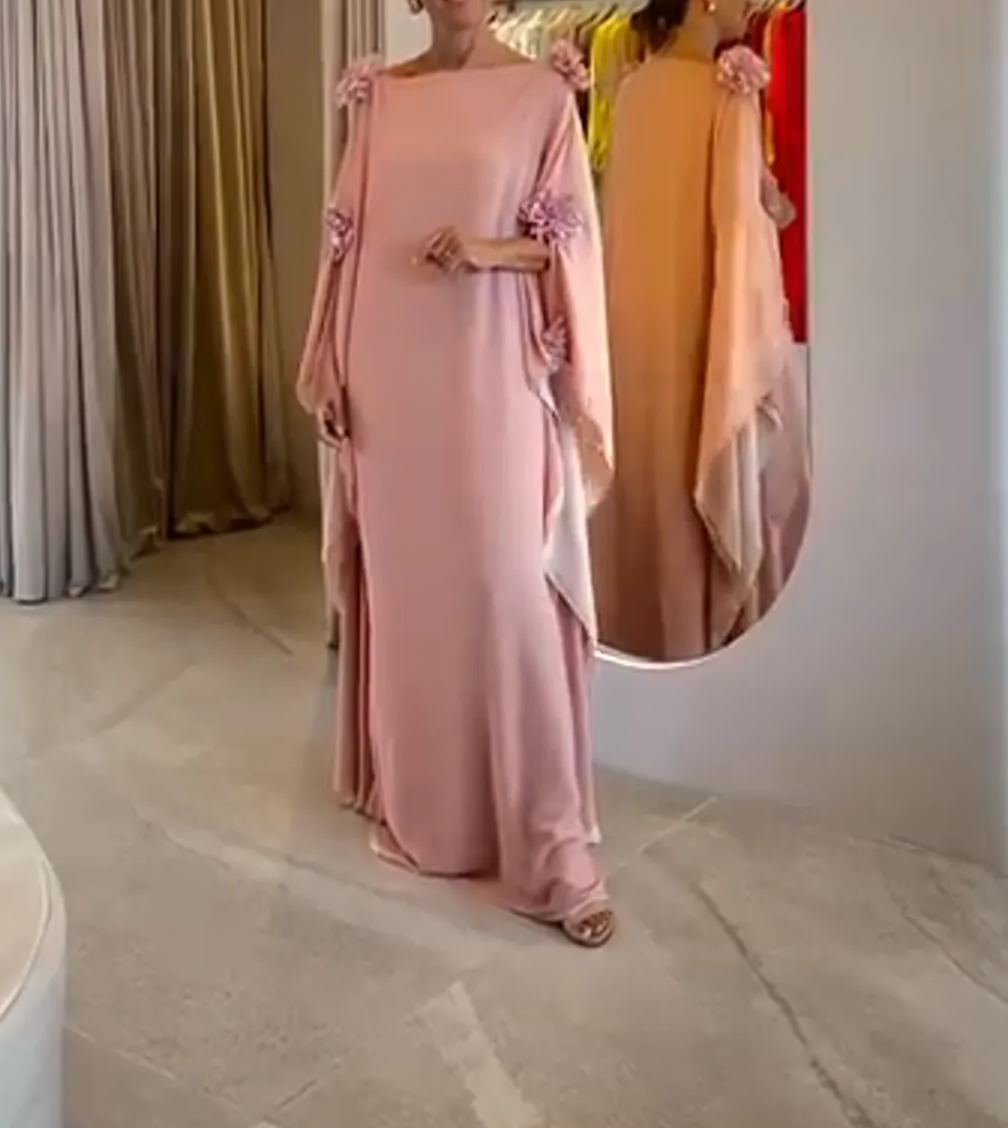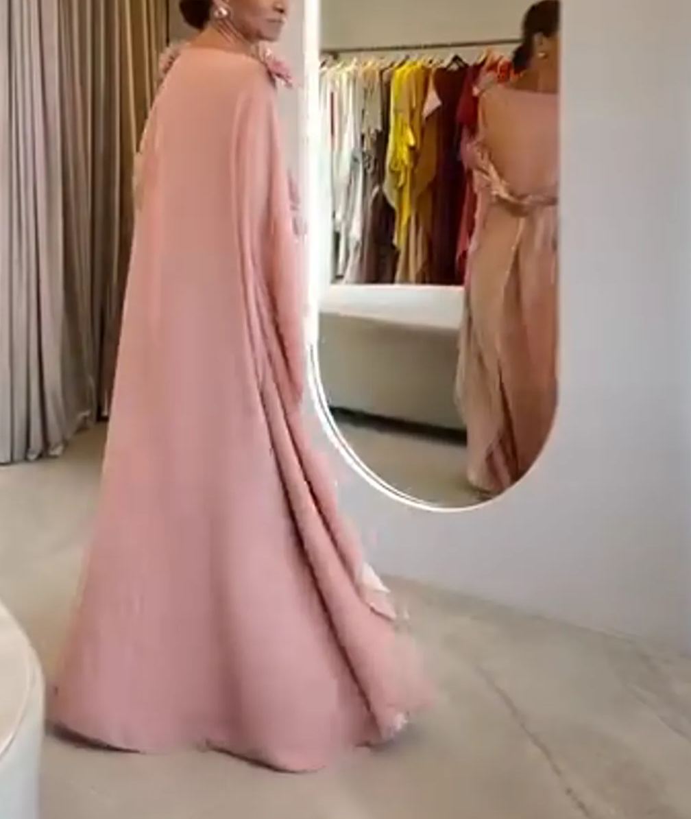Blush Embellished Kaftan Gown with Shoulder Florals