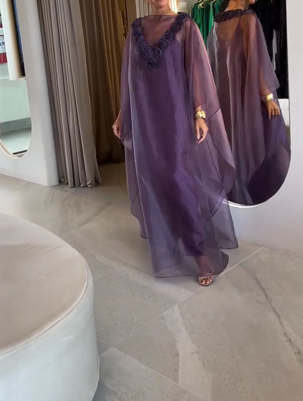 Sheer Plum Kaftan Gown with Rosette Embellishment