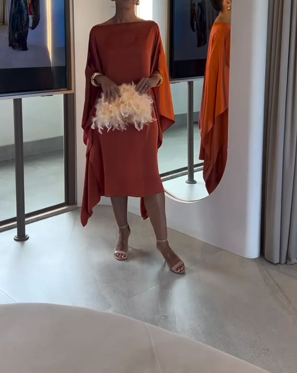 Satin Rust Kaftan Dress with Draped Sleeves