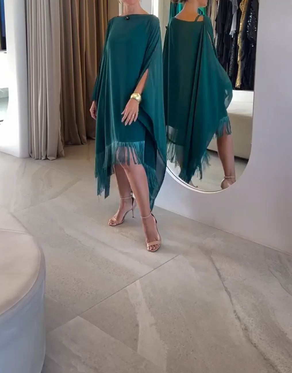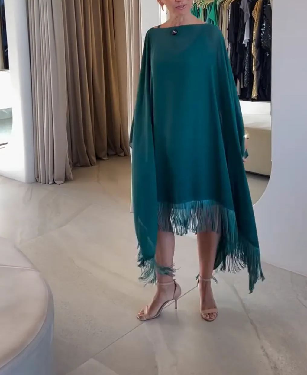 Strapless Evening Dress with Tassel Cape