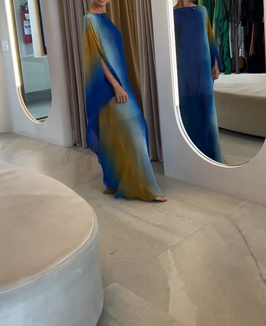 Ombre Flowing Kaftan Dress in Olive & Royal Blue