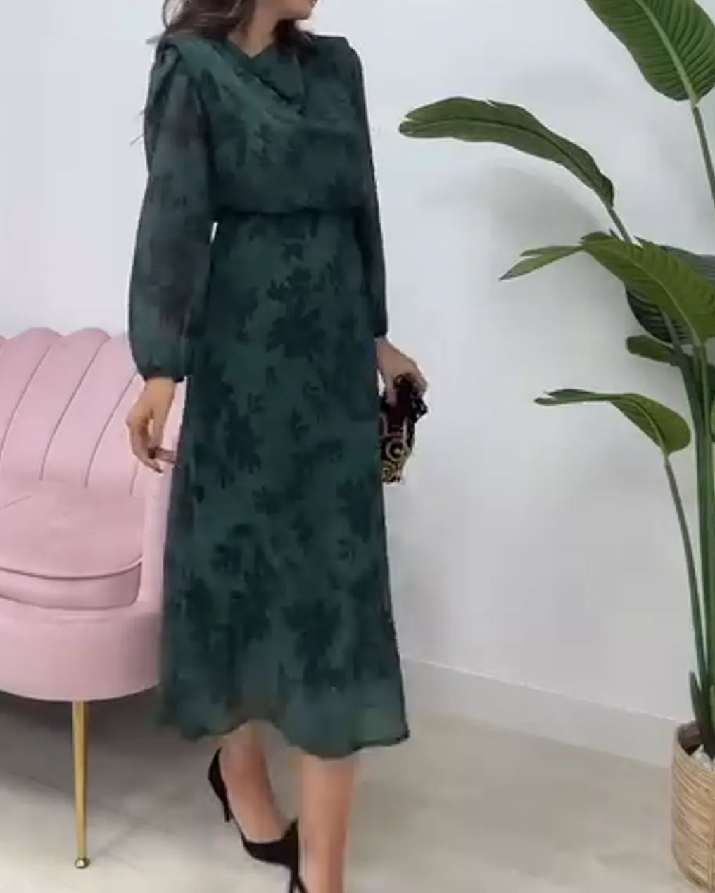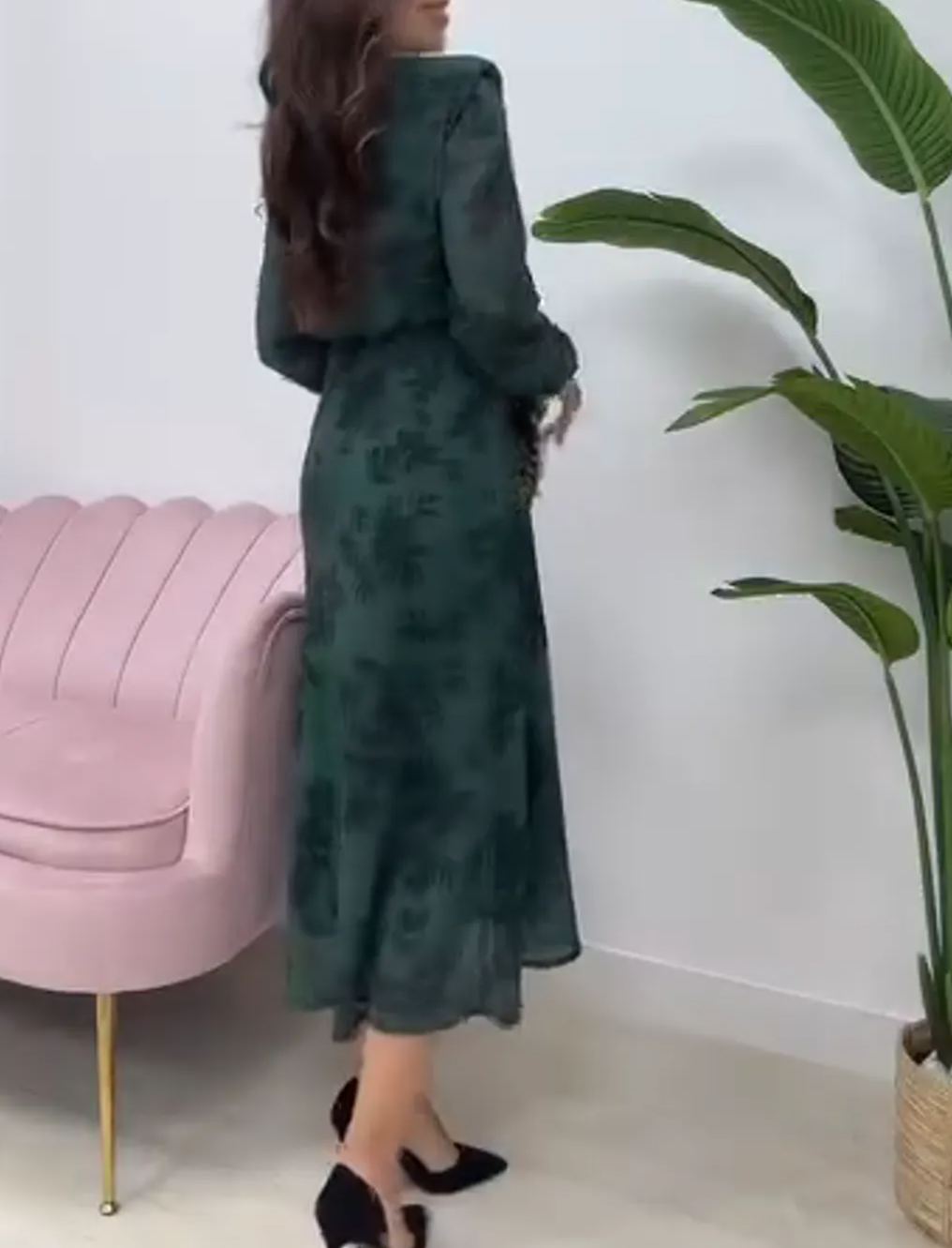 Emerald Green Floral Midi Dress