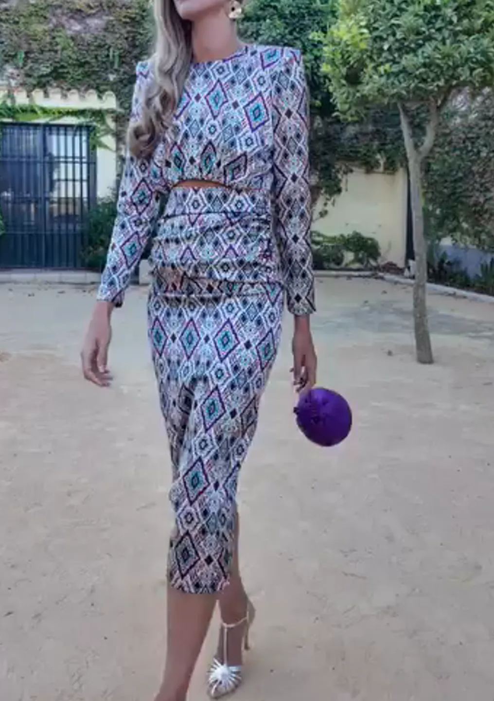 Geometric Print Peplum Midi Dress