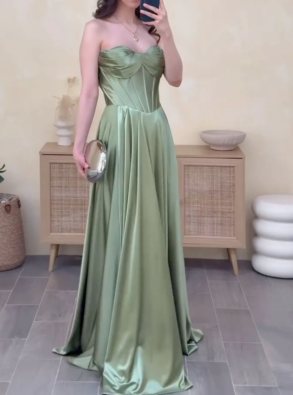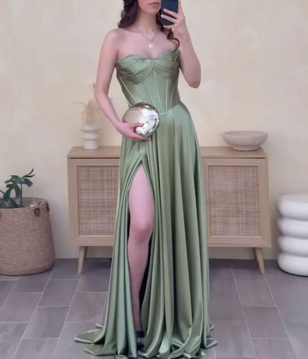 Strapless Satin Sage Green Gown