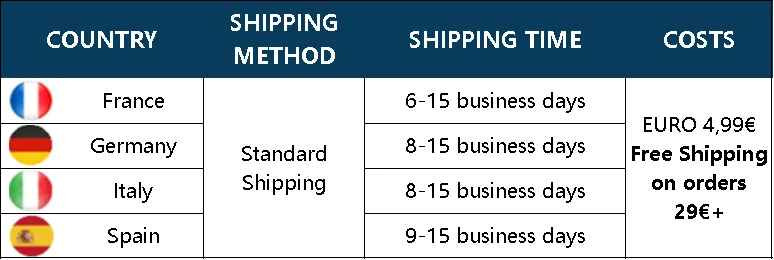 Chaque produit est expédié directement depuis notre entrepôt hors taxes et chaque client est exempté du paiement de droits de douane supplémentaires tout au long du processus d'expédition. Dans les rares cas où des droits d'importation sont exigés, veuillez nous contacter.