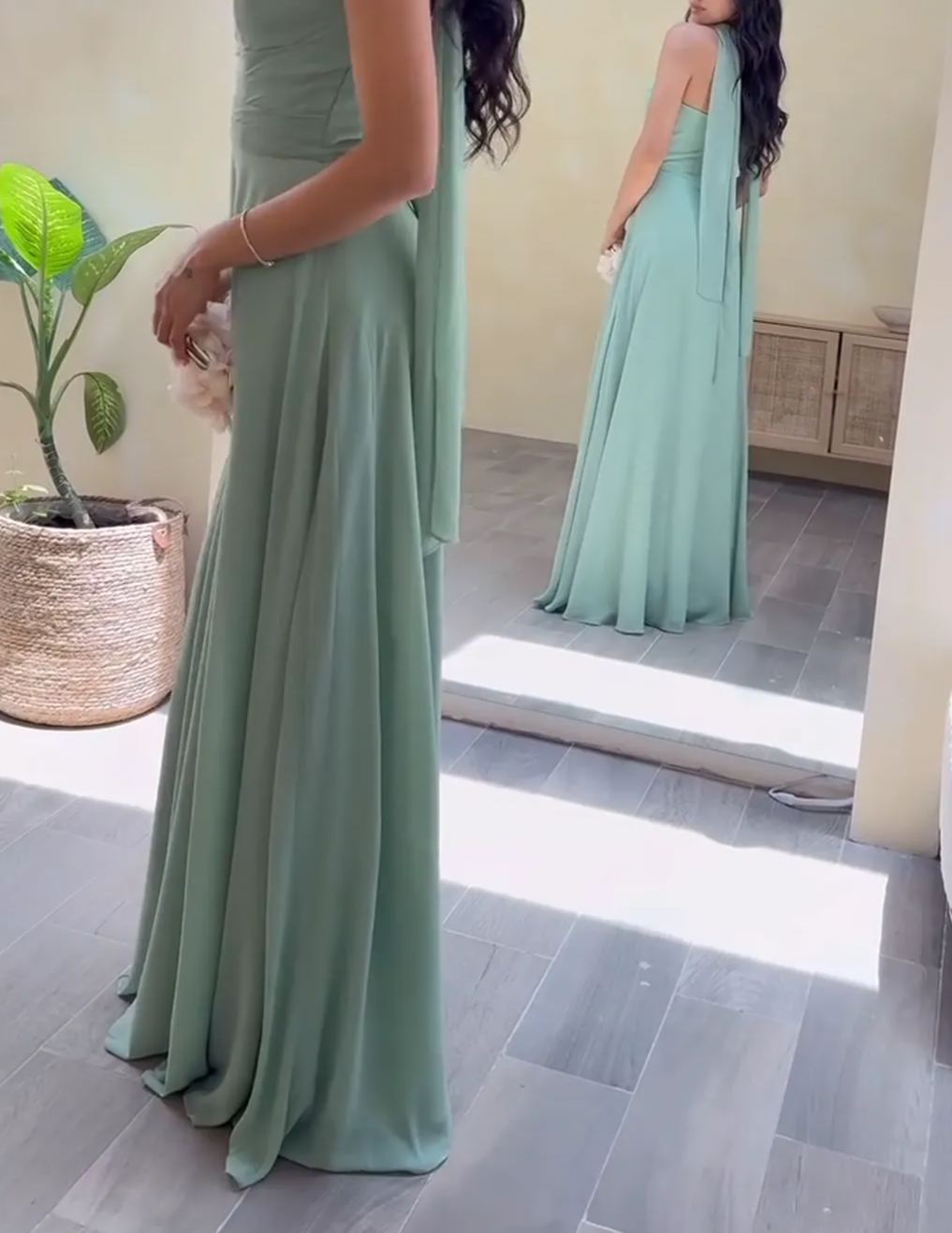 Mint Green Strapless Chiffon Maxi Dress