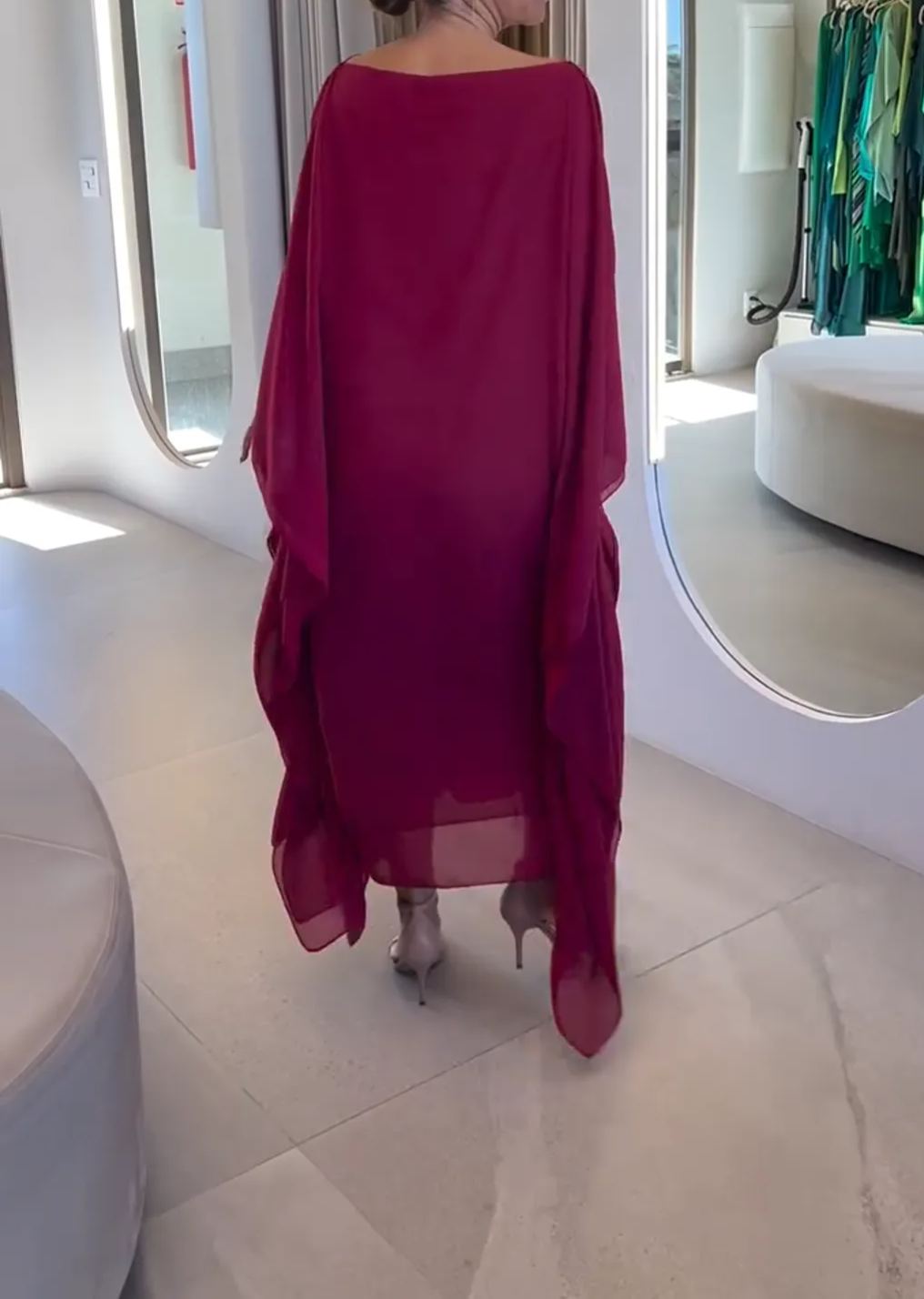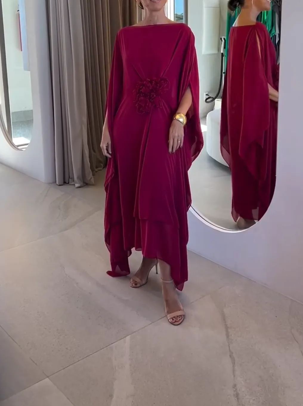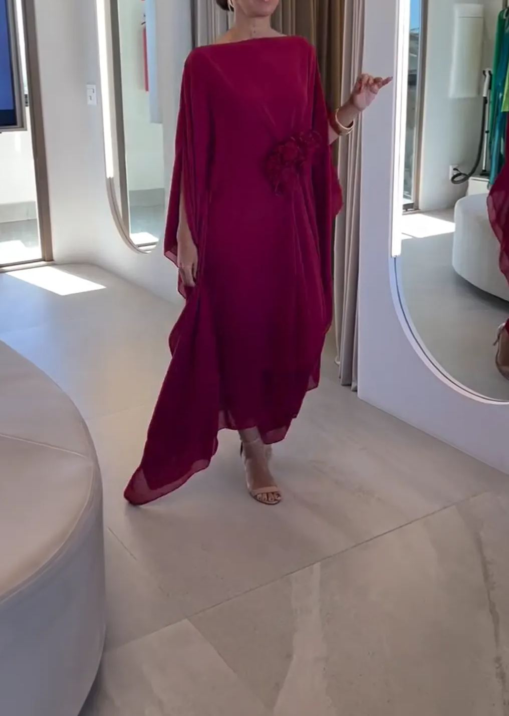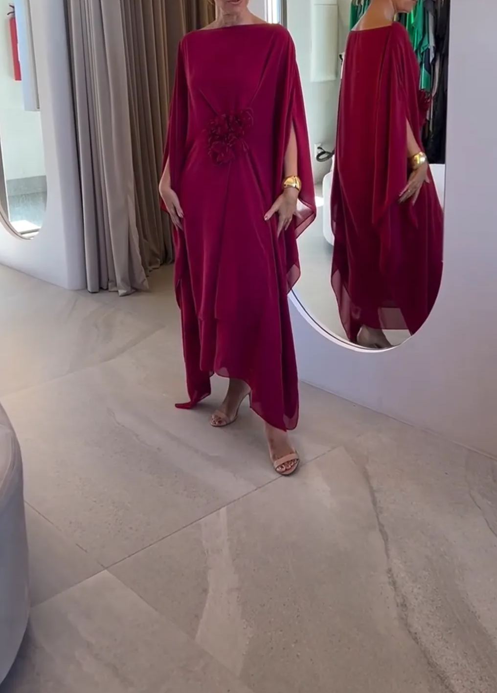 Elegant Burgundy Evening Gown with Floral Waist Detail